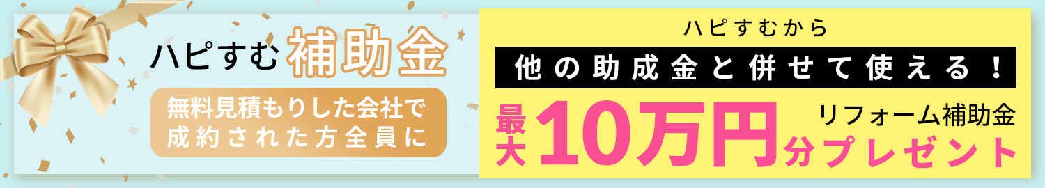 さらに本サービス利用者限定の「ハピすむ補助金」という独自の補助金があり、最大10万円がもらえます。